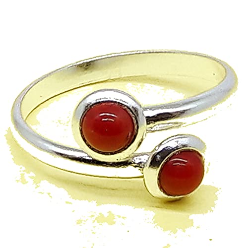 Anello Corallo Rosso Oceanico 2 Cabochon da 4mm.