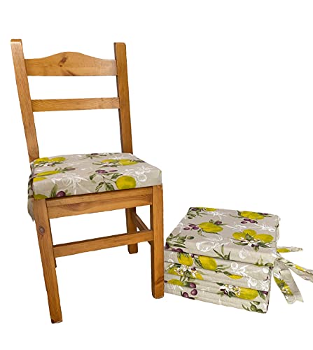 Generico Cuscino con Fodera Coprisedia da cucina con Laccio MADE IN ITALY 80%Cotone Prodotto Artigianale (Limoni e Olive)