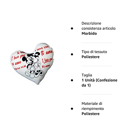 Generico Cuscino a Forma di Cuore Idea Regalo Amore Romantico per San Valentino, Anniversario, Natale, Compleanno - Per Lui e per Lei Fidanzati (Topolino)