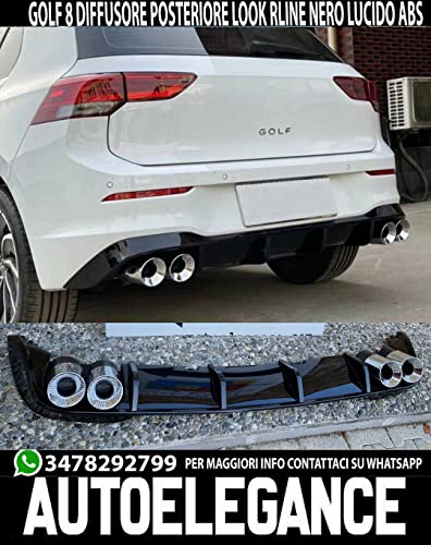 Generico DIFFUSORE Posteriore per Golf 8 dal 2019 sotto PARAURTI con TERMINALI ESTETICI 2+2 Look R Line ABS