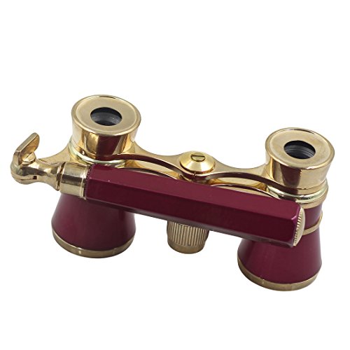 Generico Ippica Opernglas Binocular Telescope con maniglia retrattile 3X 25 (rosso con finiture d'oro)