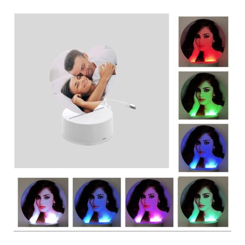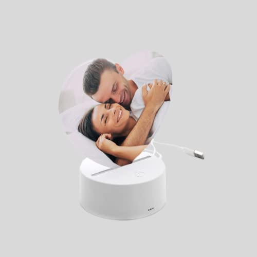 Generico Lampada personalizzata con foto Cornice led in Plexiglass Trasparente trasparente da tavolo scrivania comodino Quadrata Tonda Cuore Rettangolare (Cuore)