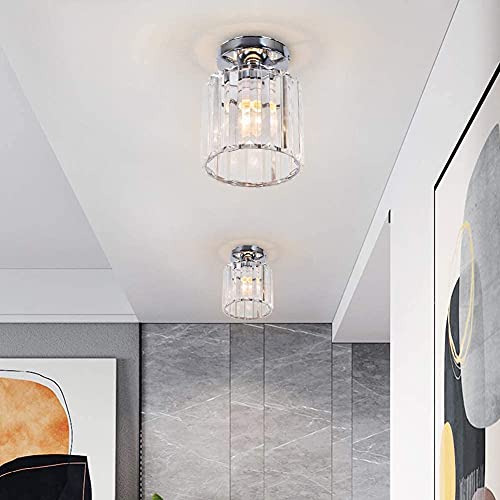 Generico Mini Lampadario a Soffitto in Cristallo Plafoniera Moderna Lampada a Sospensione in Cristallo per Cucina Isola Sala da Pranzo Camera da Letto Corridoio,E26,Argento