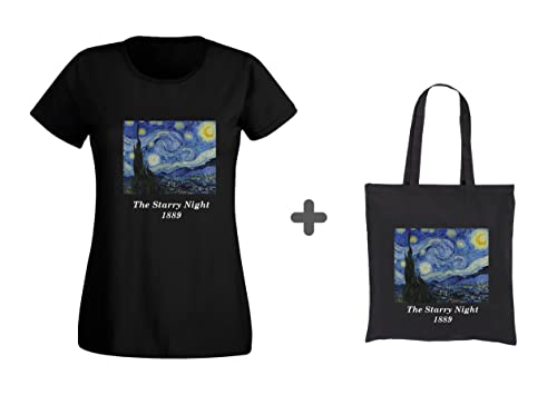 Generico Maglietta Shopper Notte Stellata Donna Ragazza Regular Van Gogh (M)