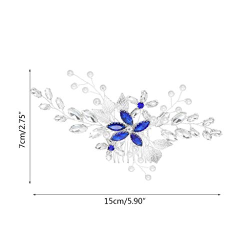 ☛ Questo pezzo di capelli da sposa è fatto a mano al 100% da strass zaffiro, cristallo, foglia, perla, filo d'argento e pettine per capelli per la delicatezza della natura
