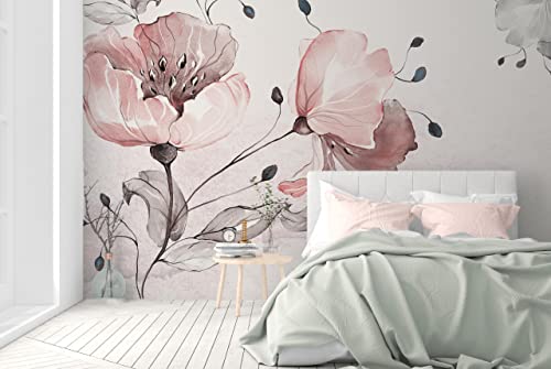 Generico Art Murals Carta da parati in vinile, 420 х 280 cm, acquerello, stampa floreale, fiori per parete, motivo floreale, decorazioni per la casa, modern