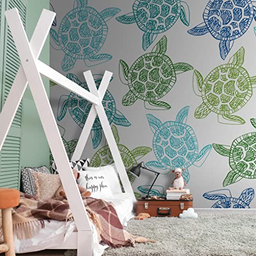 Generico Art Murals Carta da parati in vinile, 270 х 180 cm, Tartarughe colorate, carta da parati per la camera dei bambini, carta da parati per il soggiorno, carta da parati per la camera da letto