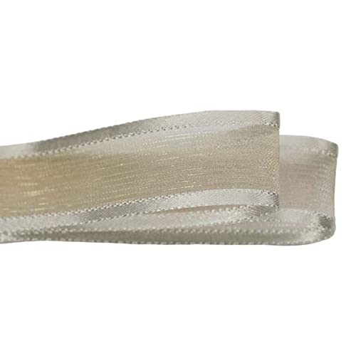 Generico Nastro in Organza Bordata in Satin Colore Beige 12 mm x 50 Metri