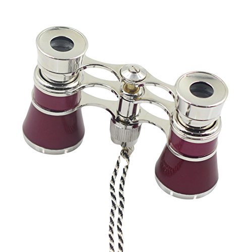 Generico Opera Glasses Binocular Telescope Ippica Argento catena 3X 25 (Rosso con Silver Trim)