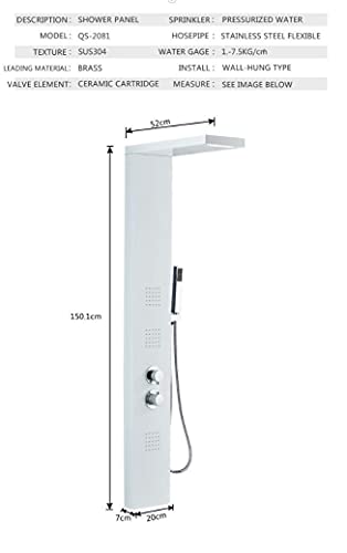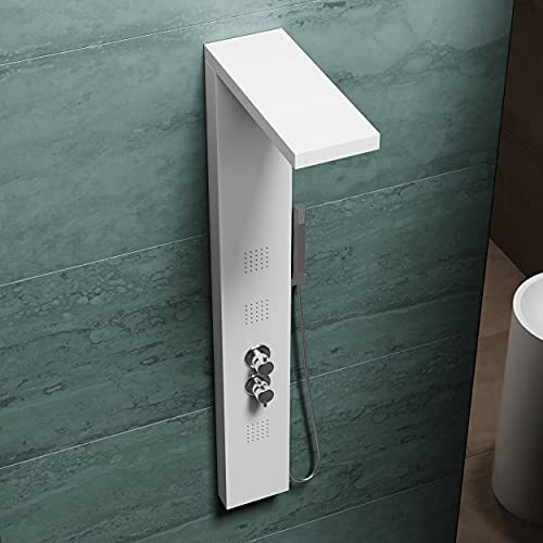 Generico Pannello Colonna Doccia idromassaggio, soffione e Funzione Cascata, miscleatore termostatico (Bianco)