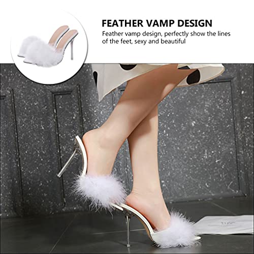 Generico Pantofole Tacco per le Donne Delle Donne Fluffy Piuma Sandalo A Punta Pantofola Stiletto Abito Da Sposa di Alta Scarpe Tacco