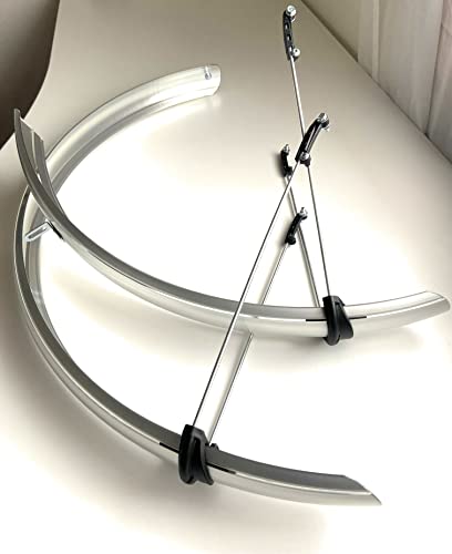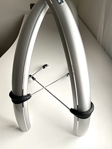 Generico PARAFANGO PARAFANGHI Anteriore E Posteriore MTB Mountain Bike 26" Resistente Completo di ASTE E Viti Colore Argento