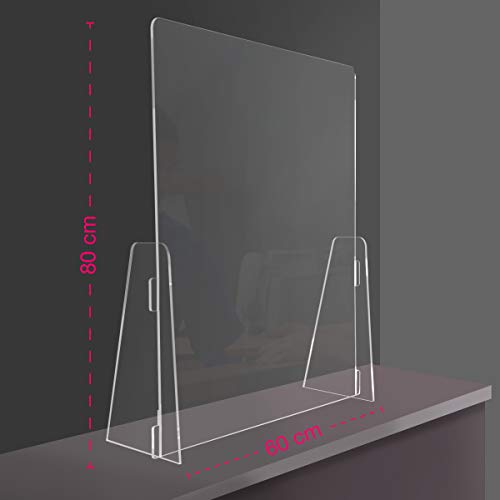 Generico Parafiato/parasputi da banco PPN - Parete divisoria per la Sicurezza in plexiglass Trasparente 4 mm Copertura Totale (60x80cm)