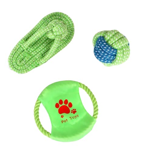 Generico Set 3 Pezzi Gioco Corda Per Cane Pulizia Denti Salute Mentale 100% Cotone Taglia Piccola Media Cuccioli Puppy Masticare Interattivo Resistente Cucciolo Lavabile (VERDE 3)