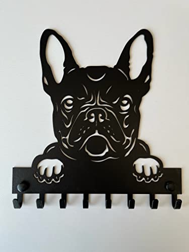 Portachiavi da parete dal design unico con sagoma a forma di Bull Dog Francese. Può essere utilizzato anche come portaguinzaglio e collare da muro;