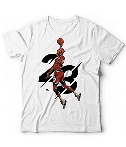 Generico T-Shirt Uomo MJ 23 Hoop - Campioni Basket NBA Pallacanestro 23 Tunes (Bianco, S)