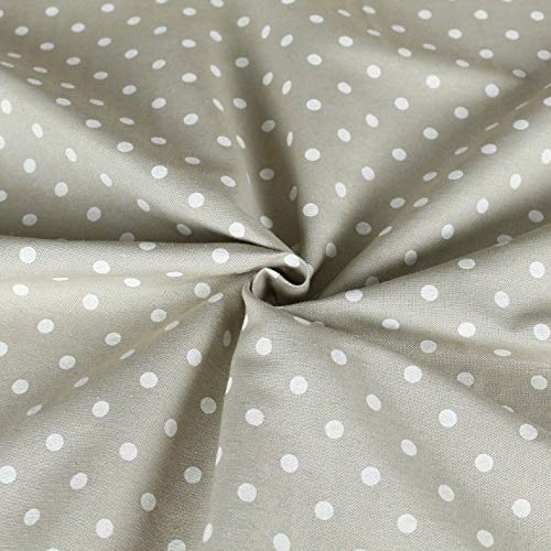 Generico Tessuto arredo Panama Canvas - al Mezzo Metro - Effetto Canapa - Misto Cotone - Base Tortora, Fantasie in 4 Colori (Pois Bianco)