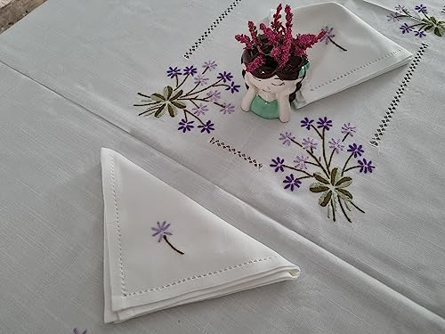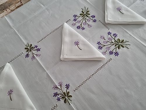 Generico Tovaglia misto lino con ricamo a mano 135x175 cm 6 posti