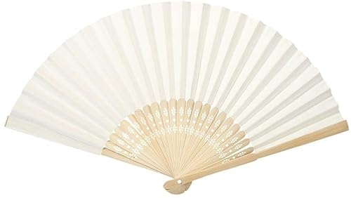 Generico Set 36 VENTAGLI di Legno Bambu' E Carta Bianco per Matrimoni Wedding Sposa Eventi SEGNAPOSTO Chiesa