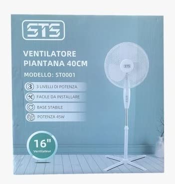 Generico STS - Ventilatore a piantana con oscillazione, 45 W, 40 CM, colore bianco, altezza regolabile,3 livelli di potenza selezionabili, griglia a rete, dispone di una moderna finitura bianca.