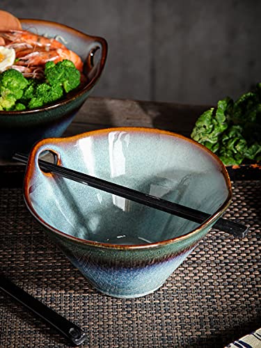 Porcellana massiccia e design unico - Colore smaltato fatto a mano a 1200 °C in porcellana. Sulla superficie della ciotola ci sono due manici per impedire alle bacchette di scivolare.