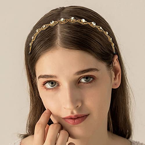 Generse Fasce per capelli in metallo intrecciato con catena color oro, accessori per capelli alla moda per donne e ragazze, 1 pezzo