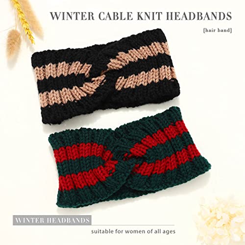 Generse Fasce invernali in maglia a croce. Elastiche a turbante grosse fasce per orecchie riscaldanti per donne e ragazze, 2 pezzi (B)