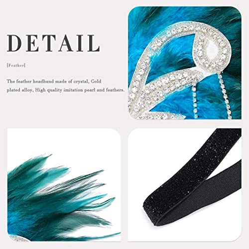 Generse Fascia da donna con piume anni '20 Flapper Copricapo grande Gatsby, con accessori per capelli in cristallo, 1 pezzo (blu)