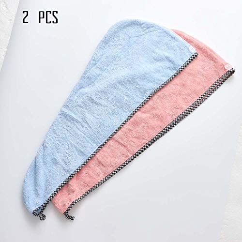 Eon Genglass - Asciugamani per capelli in microfibra, super assorbente, set di turbanti per capelli ad asciugatura rapida, con bottoni per donne e ragazze (blu e rosa (2 pezzi)