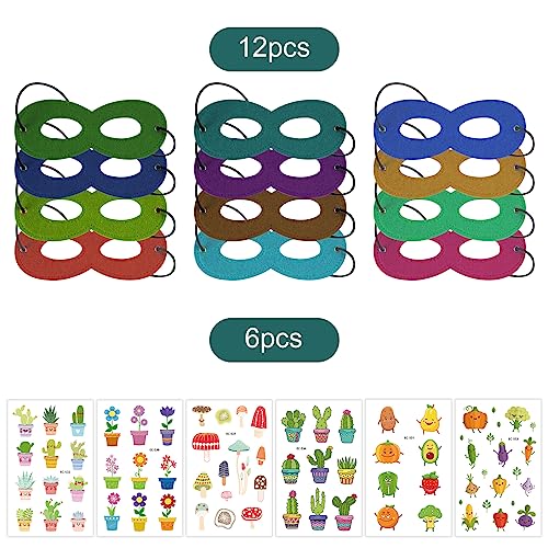 Design assortiti: il set include 12 diverse maschere per più giochi di ruolo e per soddisfare le diverse esigenze dei bambini (inoltre ci sono 6 adesivi).