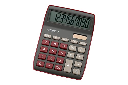 Genie 840 B Calcolatrice a 10 cifre (Dual Power (Solare e Batteria), Design compatto) rosso scuro