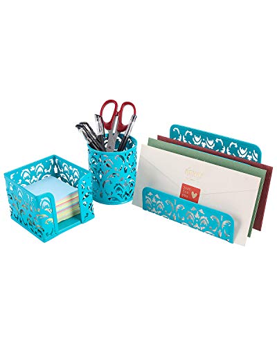 Geniric, set da scrivania 3 in 1 per ufficio, con porta documenti, portapenne, e porta post-it Blue