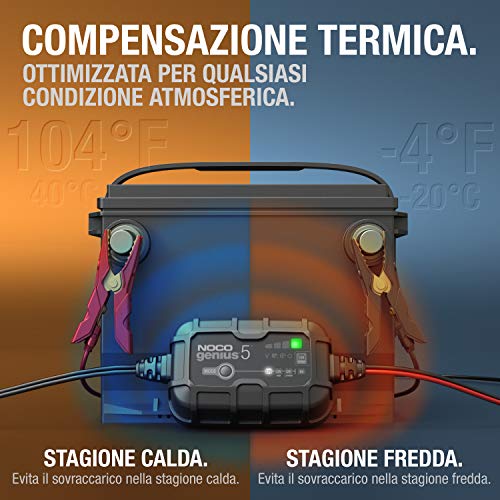 NOCO GENIUS5EU, Caricabatterie da Auto 5A, Caricabatterie Professionale da 6V e 12V, Mantenitore di Carica e Desolforatore per Batterie Auto, Moto, Scooter, Camion, Camper, Barche, AGM, Gel e Litio