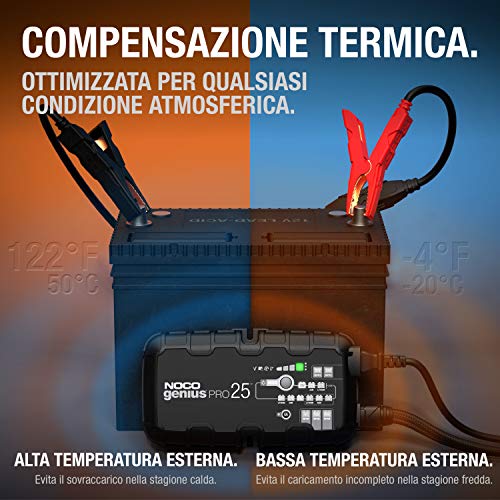 NOCO GENIUSPRO25, Caricabatterie da Auto 25A, Caricabatterie Professionale da 6V, 12V e 24V, Mantenitore di Carica e Desolforatore per Batterie Auto, Camion, Camper, Barche, AGM, Gel e Litio