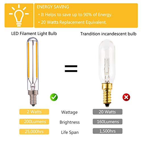 Safty & Usage: lampadine di ricambio T20 / T6 - angolo del fascio di 360 gradi, con protezione da sovraccarico, protezione da cortocircuito e protezione da sovratemperatura. Queste luci da 2 watt sono preferibili per lampada a sale, salotti, sale da pranzo, camere da letto, bagni, frigoriferi, cucine e sale ricreative, creano un'atmosfera calda!