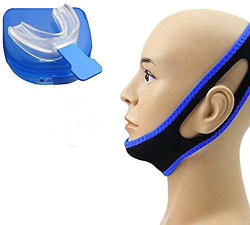 Genkent Snore stopper imboccatura Apnee Night Guard + anti Snore chin strap cintura supporto per mascella strisce nasali