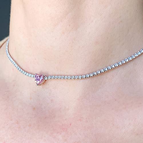 GENNY.PI® Milano | GIROCOLLO TENNIS BIANCO CON CUORE | Gioielli in Argento 925 Placcato Oro 18 Kt | Made in Italy