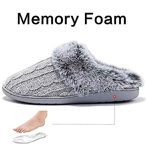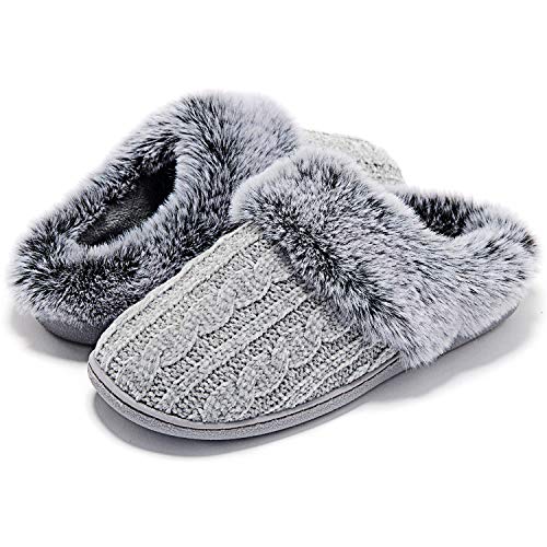 Genorum Donne Fuzzy Faux Fur House Pantofole Fluffy Maglia Camera da Letto Pantofole da Donna Memory Foam Scarpe Antiscivolo Suola, grigio., 42 EU