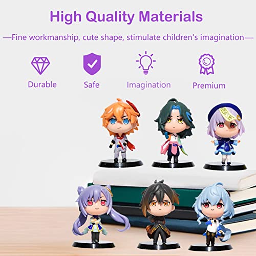 Genshin Impact Figurine 6 Pezzi Genshin Impact Mini Figure Set Genshin Impact Action Figurine Cake Topper Decorazione Torta per Bambini Forniture per Festa di Compleanno (Seconda Generazione)