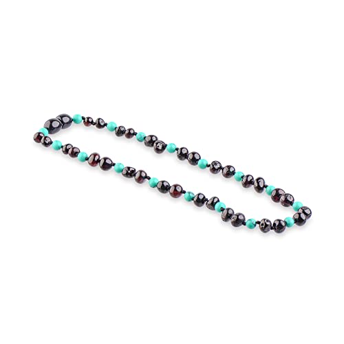 Genuine Amber Collana in ambra lucida con perline turchesi verdi - collana fatta a mano, ambra