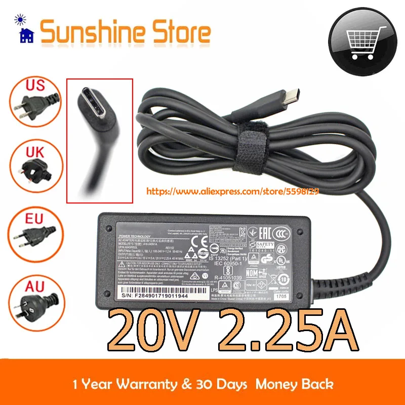Genuine Chinony A16-045N1A Ac Adapter AC45R053L 45W Type C For ACER SWIFT7 SPIN7 Power Supply 00HM634 01FR032 5A10K34713 00HM640