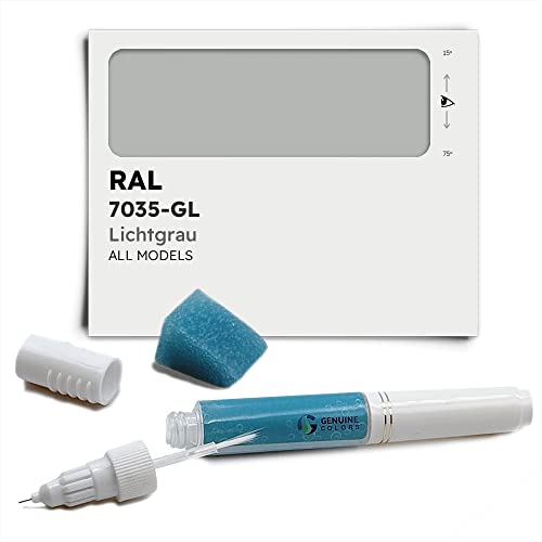 Genuine Colors Pennarello a vernice grigio chiaro 7035-GL compatibile/ricambio per RAL grigio [include uno strumento di lisciatura]
