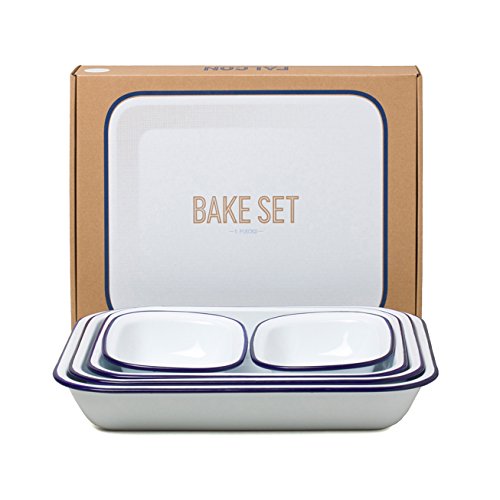 Genuine Falcon Enamelware Bake Set (Classic White with Blue Rim)"