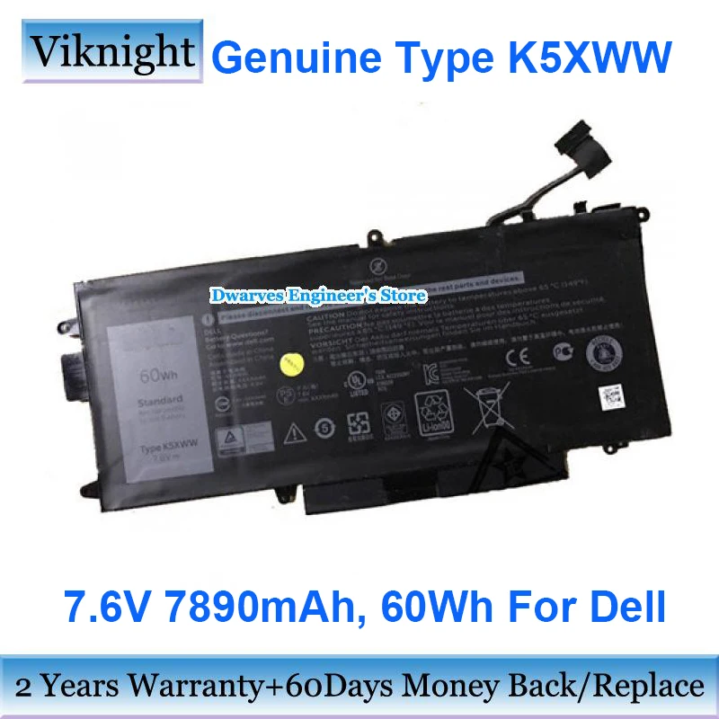 Genuine 60Wh K5XWW Laptop Battery 6CYH6 725KY For Dell Latitude 12 5289 Latitude 7389 7390 2-in-1 E5289 L3180 7.6V 7890mAh