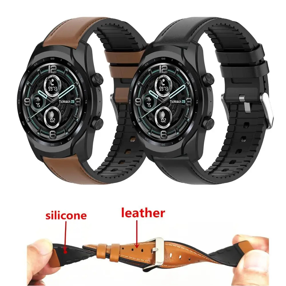 Genuine Leather Strap For Ticwatch Pro 3 Silicone Band For Ticwatch Pro 3 GPS 4G/LTE 2020 GTX E2 S2 S Mens Replacement Bracelet