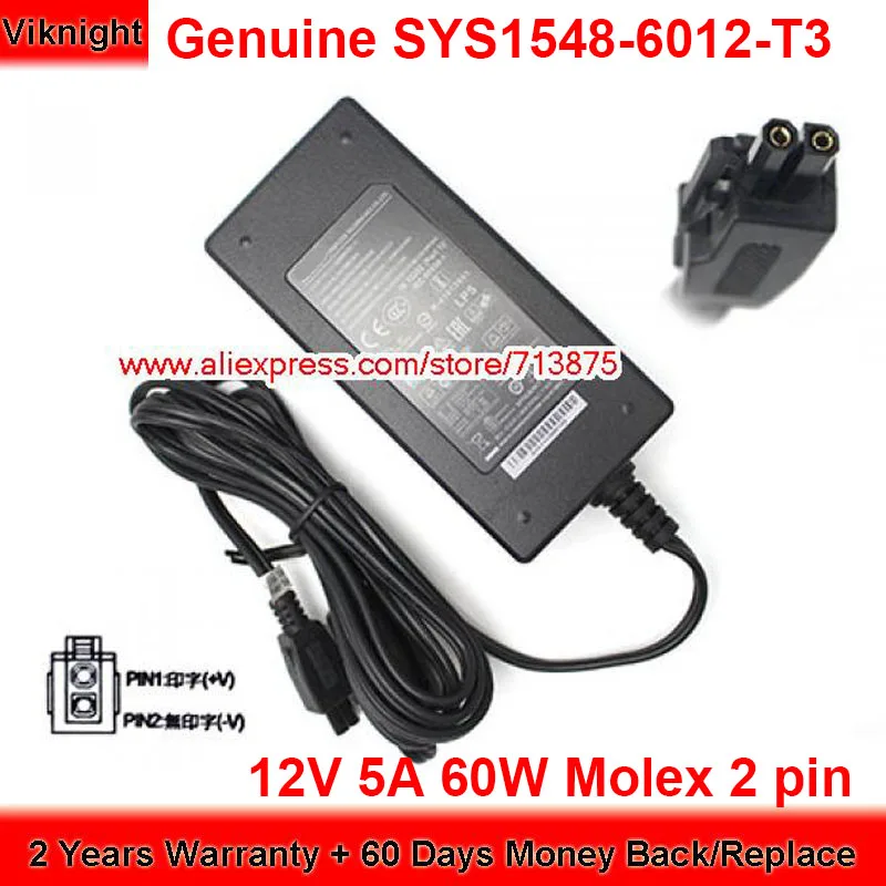Genuine SYS1548-6012-T3 60W Charger 12V 5A AC Adapter for Dell SMA 200 SYS15486012T3 Molex 2 pin Plug Power Supply