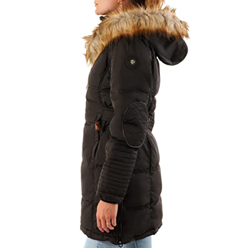 Geographical Norway Beautiful Lady Distribrands - Parka Caldo Da Donna - Cappotto Cappuccio Di Pelliccia Finta - Giacca A Vento Invernale - Giacca Lunga Fodera - Regalo Donna (Nero L)