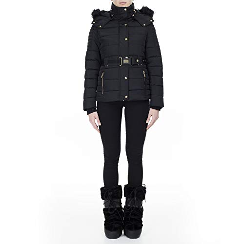 Geographical Norway Blood Lady - Parka Caldo da Donna, con Cappuccio in Finta Pelliccia, Giacca da Vento Invernale, Piumino Lungo, Fodera Calda da Donna (Nero, S)