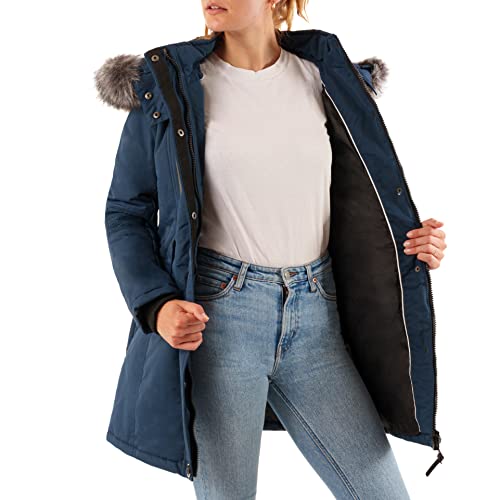 Geographical Norway Coraly Lady Distribrands - Cappotto invernale da donna, a maniche lunghe, con colletto in finta pelliccia elegante, alla moda, casual (Marino, L)