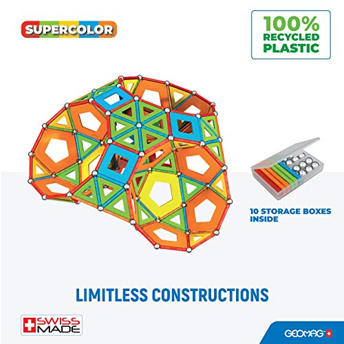 Geomag - Supercolor Masterbox Costruzioni Magnetiche per Bambini, Giocattolo Magnetico Linea Green 100% Plastica Riciclata, 388 Pezzi